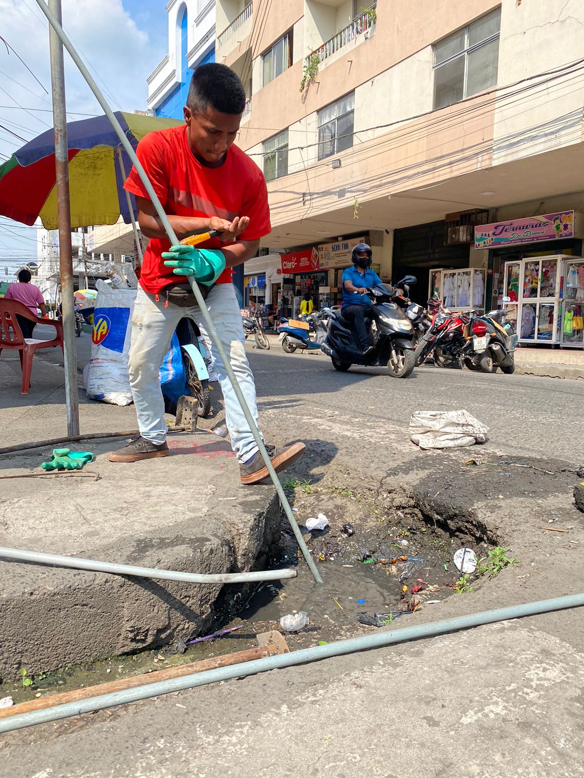 Diariamente realizamos trabajos con la ayuda del camión de hidrocleaner, extrayendo la basura y el material sólido acumulado en los diferentes sistemas de alcantarillado en la ciudad, para evitar posibles inundaciones ante la llegada del fenómeno de El Niño.